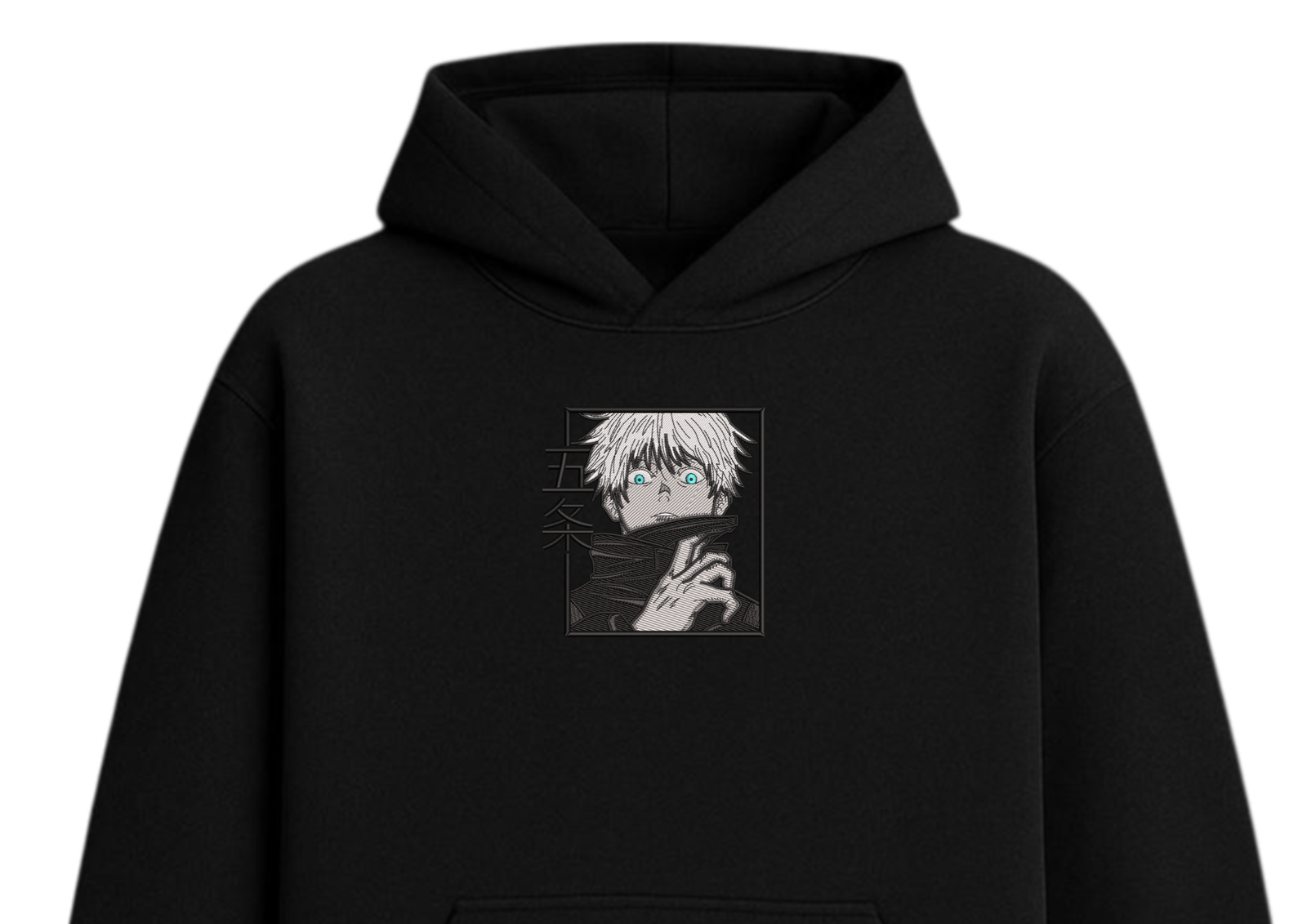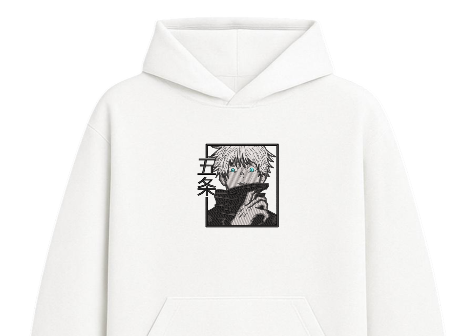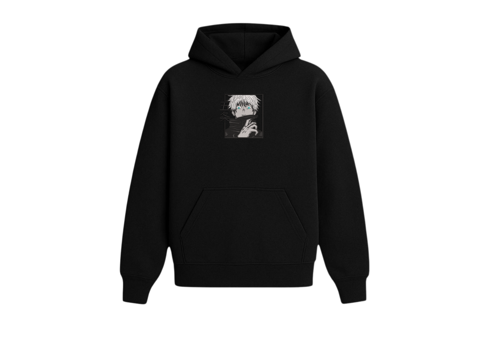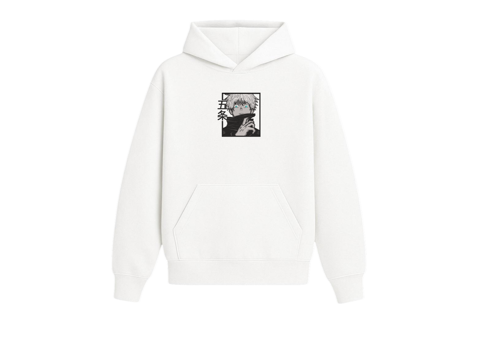 Un diseño que captura la intensidad única de Gojo, con sus ojos brillando como el verdadero sello de poder. La simplicidad del blanco contrasta con el impacto visual de los detalles, logrando una prenda que habla por sí sola.
