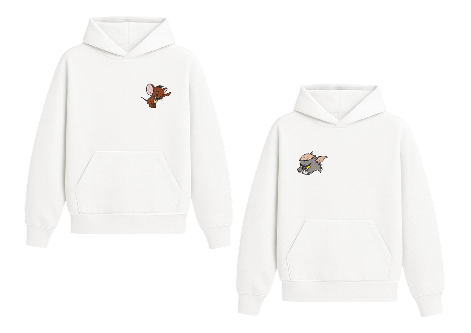 Un clásico que nunca pasa de moda: Tom y Jerry bordados en su mejor versión. Traviesos, divertidos y eternos, este dúo representa esa energía de amigos que se pelean pero no pueden vivir separados.