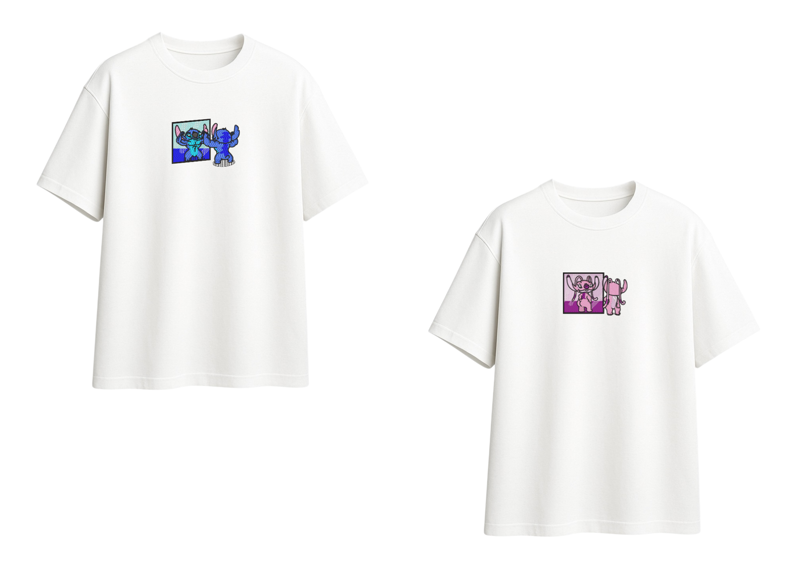 El dúo más querido de Lilo & Stitch llega en versión exclusiva: Stitch y Angel reflejados frente al espejo, con toda la actitud y ternura que los hace únicos. Un bordado lleno de color y detalles que transmite fuerza, dulzura y complicidad.
