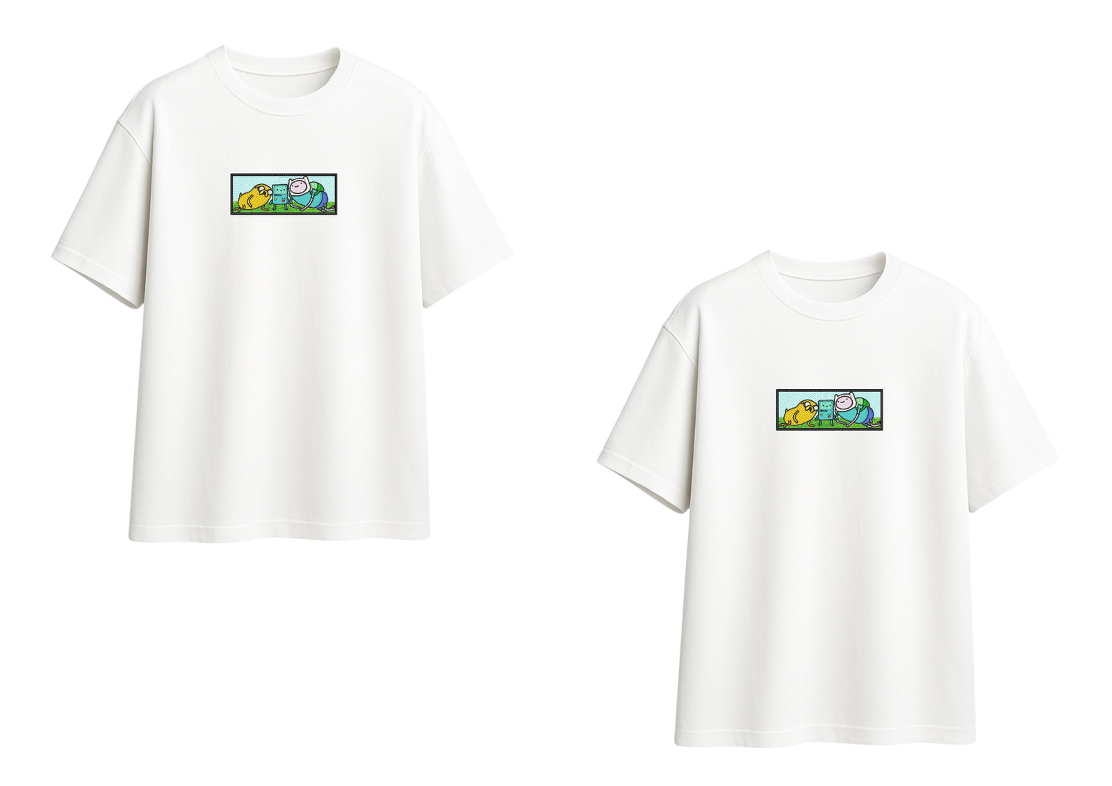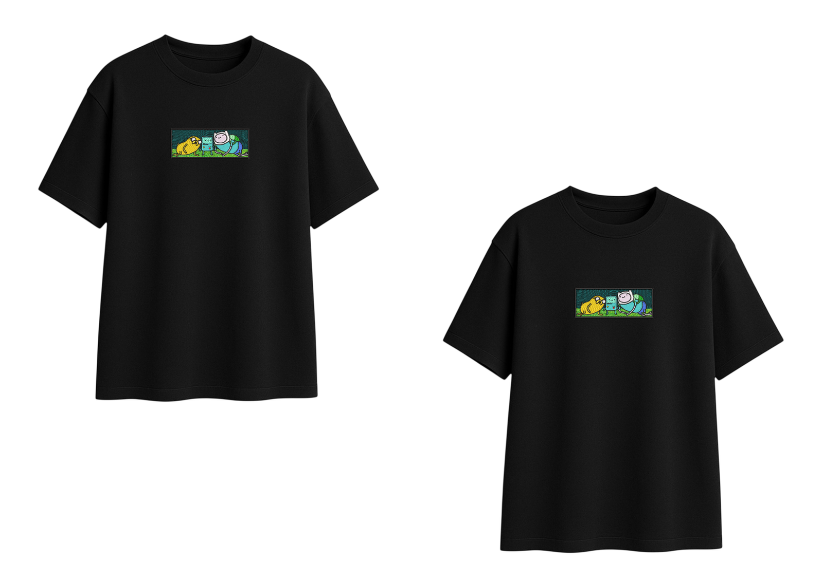 Un dúo de remeras que captura la esencia única de Hora de Aventura. Con Finn, Jake y BMO bordados con gran detalle, este diseño transmite diversión, nostalgia y el valor de la amistad.